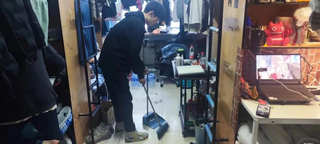 部分小伙伴们还自发地对寝室卫生进行了清理,对床下等卫生死角进行了打扫,营造了干净舒适的居住环境。劳动教育不仅是一种身体上的锻炼,更是一种精神上的磨砺。通过劳动,同学们不仅学会了如何清洁环境,更重要的是学会了团队合作,加强了责任感和自律意识。这些品质对于同学们未来的学习和生活都是极其宝贵的财富。