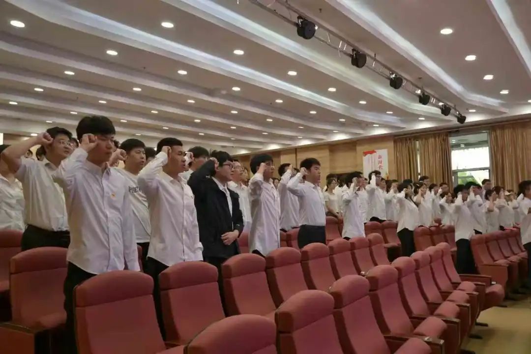 会议伊始,王丽贺老师表达了对同学们的殷切希望,鼓励同学们志存高远,尽快树立正确的学业观,合理规划自己的大学目标,实现自己的人生理想。随后,王丽贺老师为新发展预备党员颁发党徽以及政治生日纪念卡并带领广大党员干部重温入党誓词、重忆入党初心,在党旗下接受心灵的净化和洗礼,在铿锵有力的宣誓中回望初心,矢志不渝跟党走,奋勇争先往上爬,同舟共济齐向前,永葆共产党员的初心本色。最后,邀请四位学长学姐倾囊相授,从“职业规划”“四六级经验”“考研指导”“大学生科技创新比赛”四个方面分享了自己的学习和生活经验,充分发挥了榜样力量。