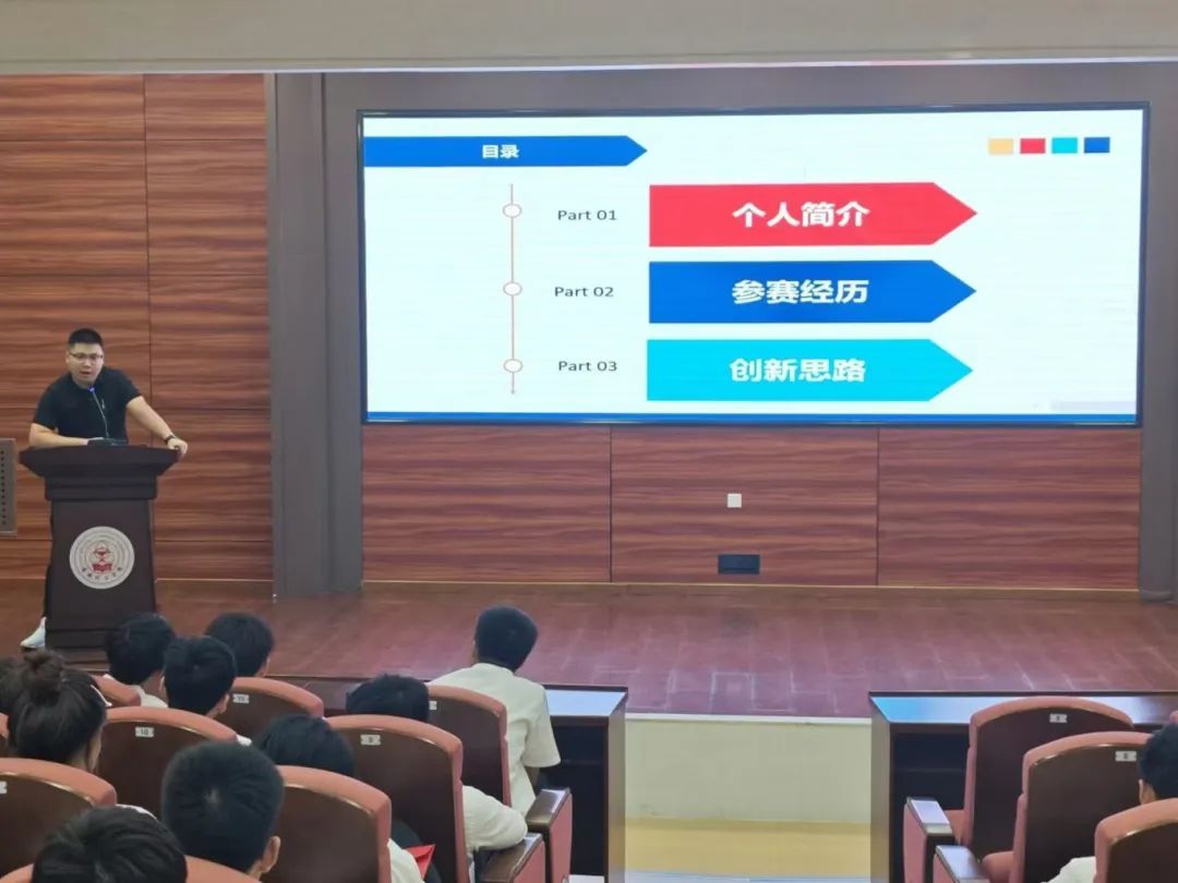 李金龙学长向我们介绍了大学生科技创新比赛,用自己的参赛经历、获奖证明等和我们一同探索关于大学生科技创新比赛的流程、比赛形式、参赛资格、赛前准备,以及如何去参加,为同学们提供了很多实用性建议,让更多同学去了解,去踊跃参加。并鼓励我们要努力拼搏、勇往直前,坚信命运的齿轮不会自己转动。