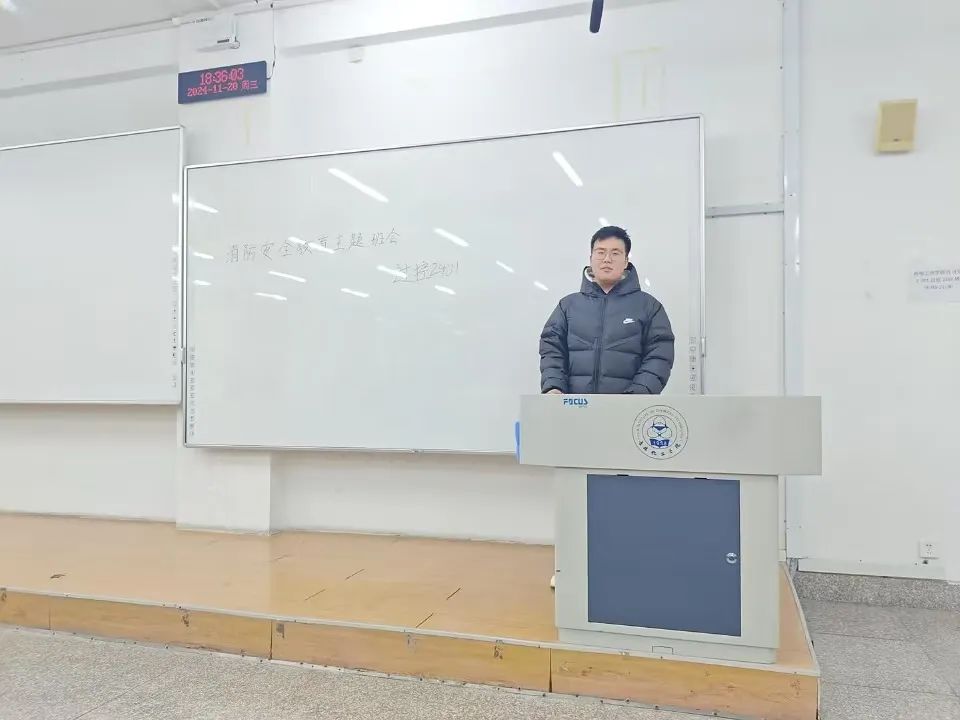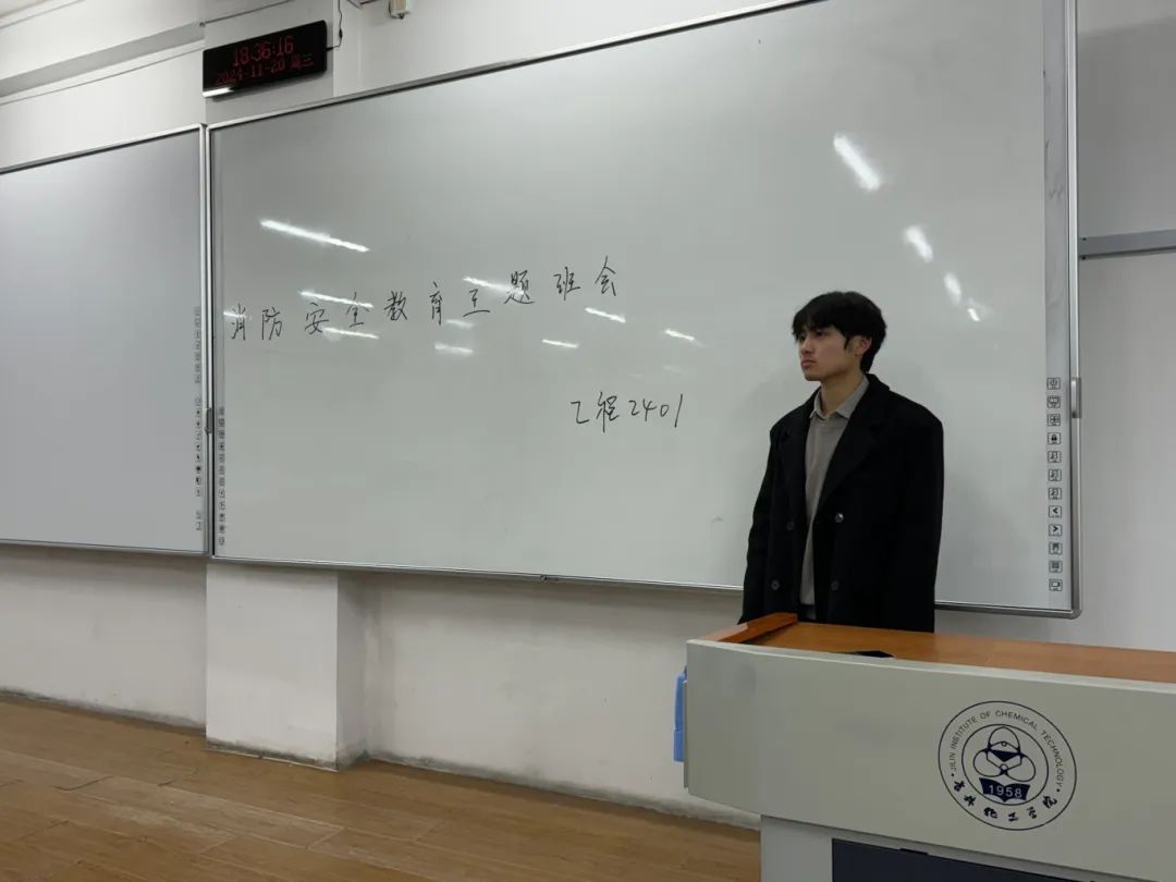 班会伊始,各班班长向同学们说明此次班会的主旨与必要性。火灾给环境的保护和资源的利用会带来严重的破坏,件件火灾事例都为我们点亮了校园消防防范的红灯。大学校园是知识传承之地,火灾危机难以预估,要践行的便是居安思危。
