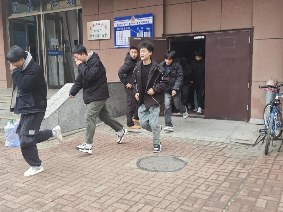 演练开始,随着一声哨响。在消防疏散引导员清晰有力的指挥下,大家迅速行动起来,弯腰弓背,以低姿的姿势有序地向宿舍楼外撤离。大家沿着规划好的安全通道,一路小跑,不敢有丝毫懈怠,快速地朝着指定的集合地点疏散。在这紧张的疏散过程中,每一个环节都衔接紧密、秩序井然,用时不久,所有参演人员都成功撤离完毕,整个过程无一人滞留,更无人员受伤,展现出了极高的应急疏散效率。