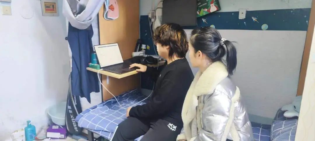在宿舍走访过程中,老师与我院学生亲切交谈,询问他们近期的生活和期末复习情况。学习期间,同学们认真备考,积极讨论。徐巧娣老师更表示“要想取得好成绩,那在期末考试前需要进行充分的复习和准备。首先,要制定一个合理的学习计划,合理安排每天的学习时间和内容,确保每个科目都有足够的时间进行复习。其次,要进行全面的复习,重点复习重要知识点和难点,做好笔记和总结,加深对知识的理解和记忆。同时,还要进行大量的练习和模拟考试,提高解题速度和准确性。”