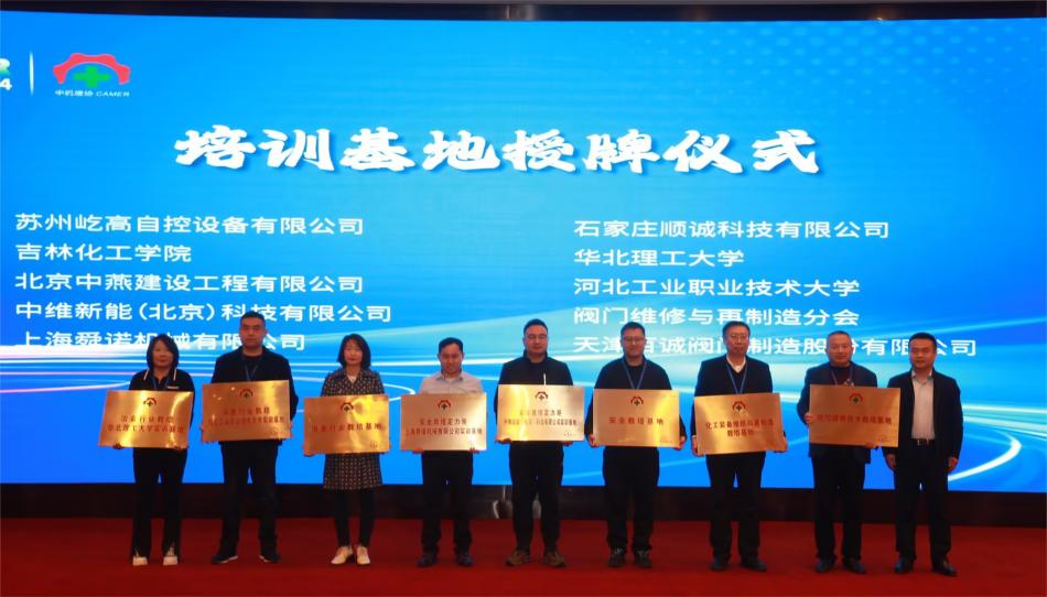 本次大会事项之一:为中机维协第一批“教培基地”的十家企事业单位举行授牌仪式。我院作为协会会员,经申报、协会审核,被批准为中机维协首批“化工装备维修与再制造教培基地”,目前,该培训基地是中机维协化工装备维修与再制造领域的国内唯一一家。我院陈庆教授作为中机维协化工装维修与再制造分会常务副理事长,代表分会和吉林化工学院接受中机维协授予的“化工装备维修与再改造教培基地”称号。