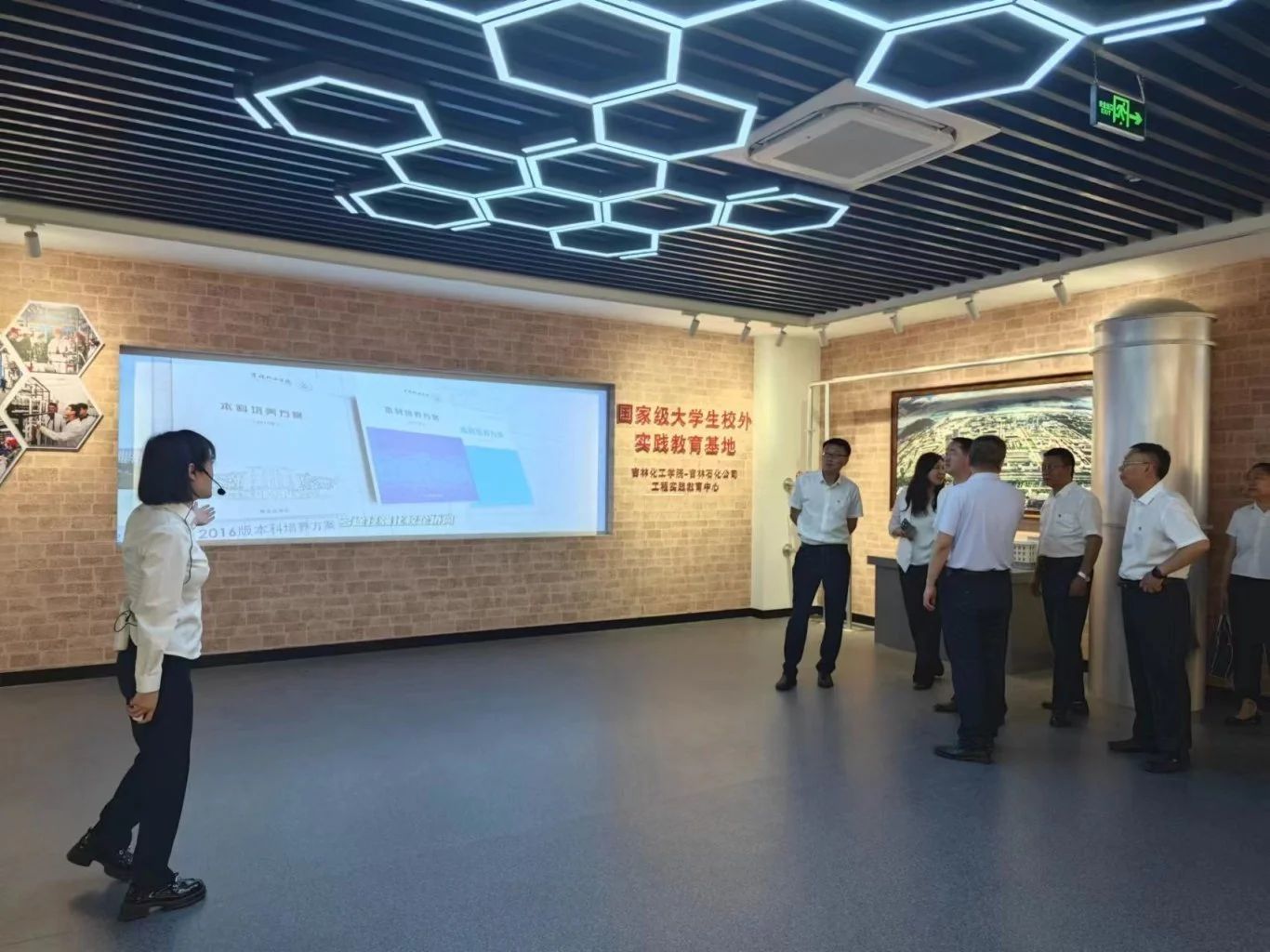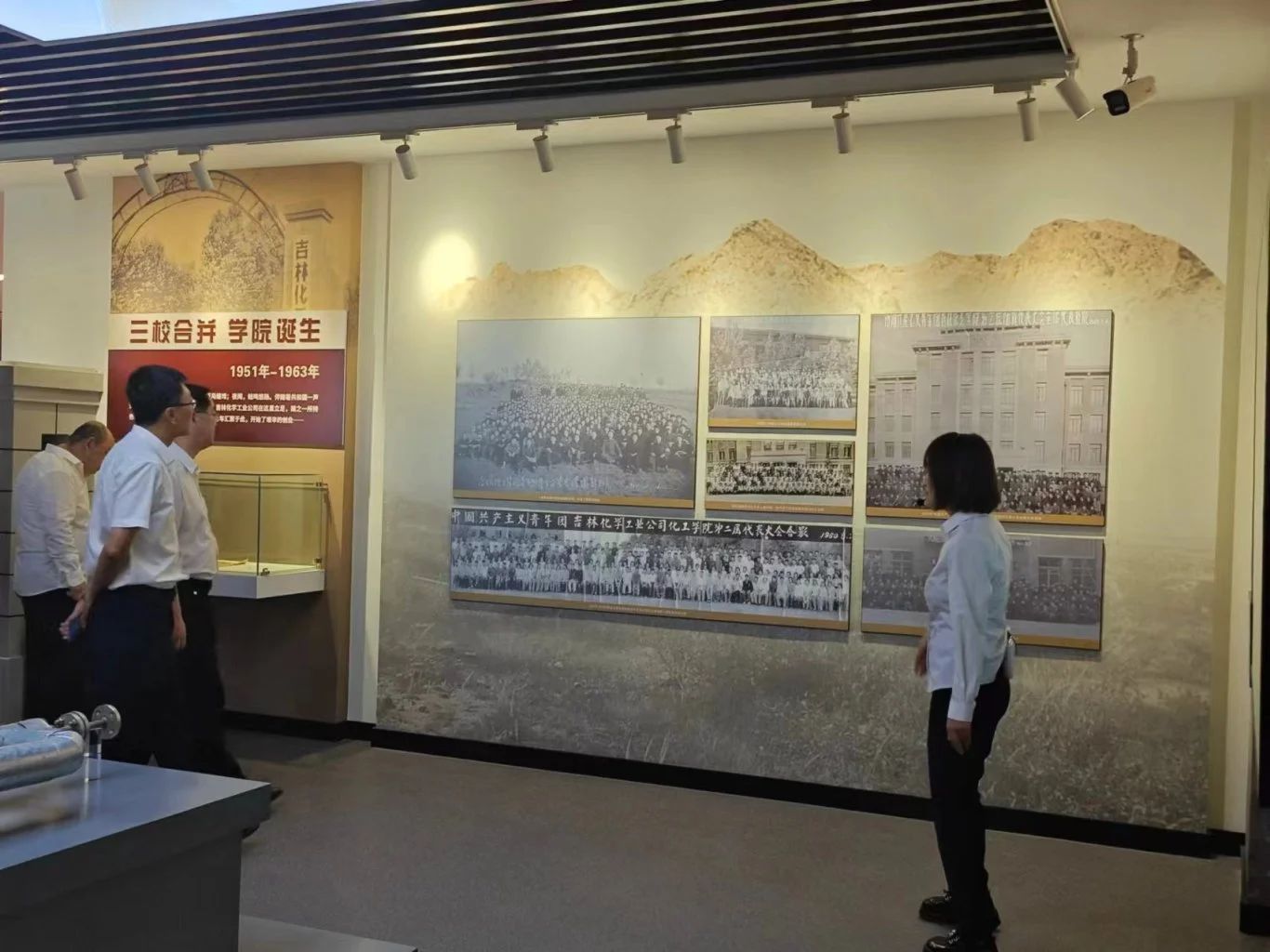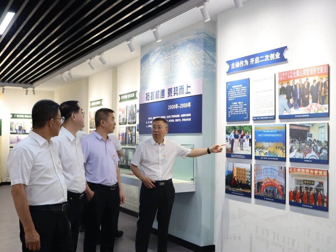 吉林化工学院校史馆落成于2024年,展馆总面积约1000平方米,主要分为序厅、“三校合并,学院诞生”、“改制调整,艰难前行”、“复校新生,加快建设”、“校企续缘,特色办学”、“抢抓机遇,乘势发展”、“内涵建设,继往开来”、“踔厉奋进,笃行不怠”八大部分,运用图文、视频、VR互动等形式,集中展示学校建设发展过程中的一次次跨越,生动再现学校一代又一代人艰苦创业、自强不息、顽强拼搏的奋斗足迹,为党员同志们呈现出一副生动光辉的校史画卷。