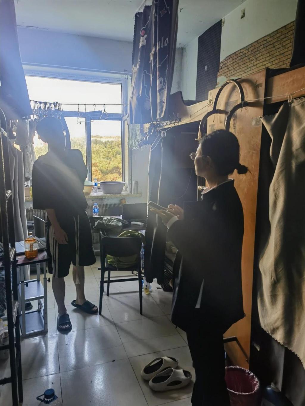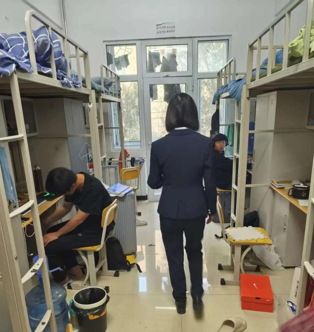 老师们开启了一场细致入微的查寝之旅。他们轻轻敲响每一扇门,走进一间间宿舍,认真检查着宿舍的安全与卫生情况。每一个角落都不放过,只为确保同学们有一个安全、舒适的居住环境。