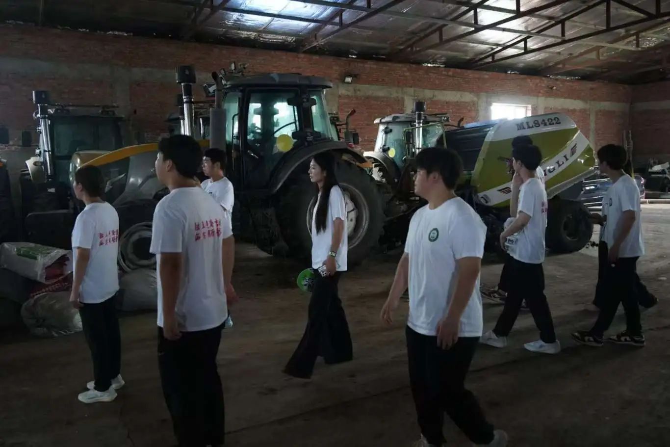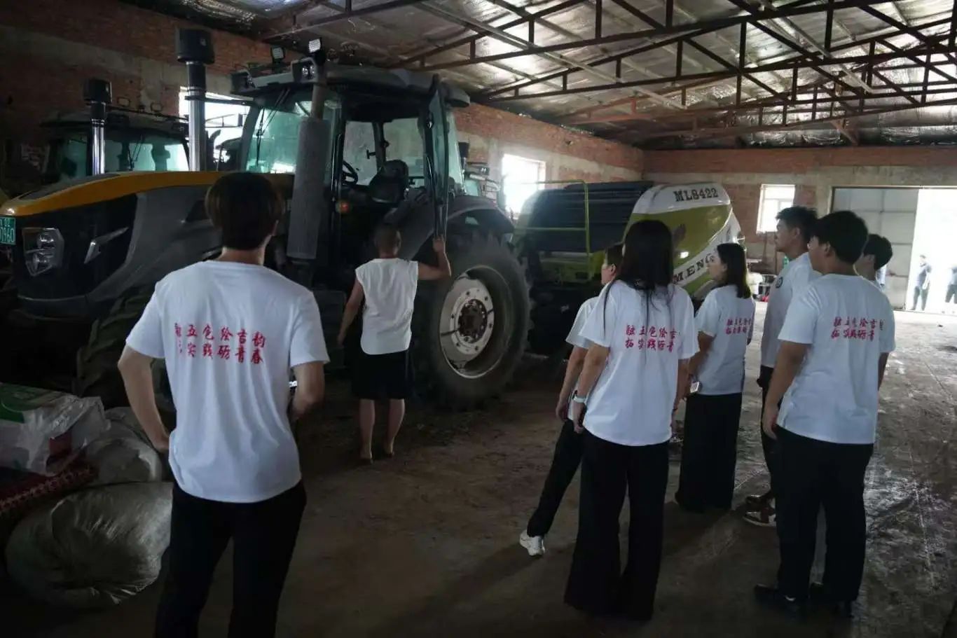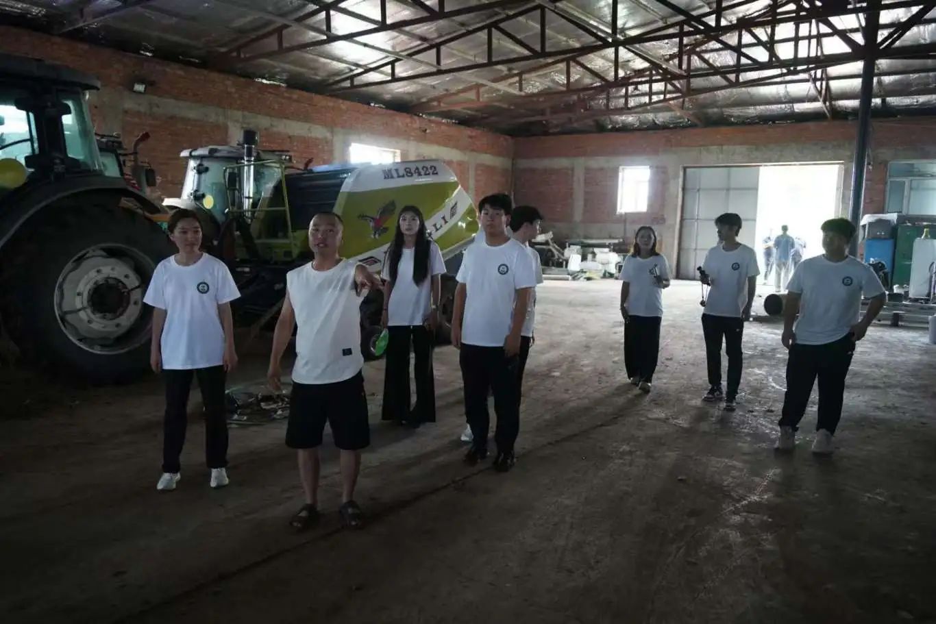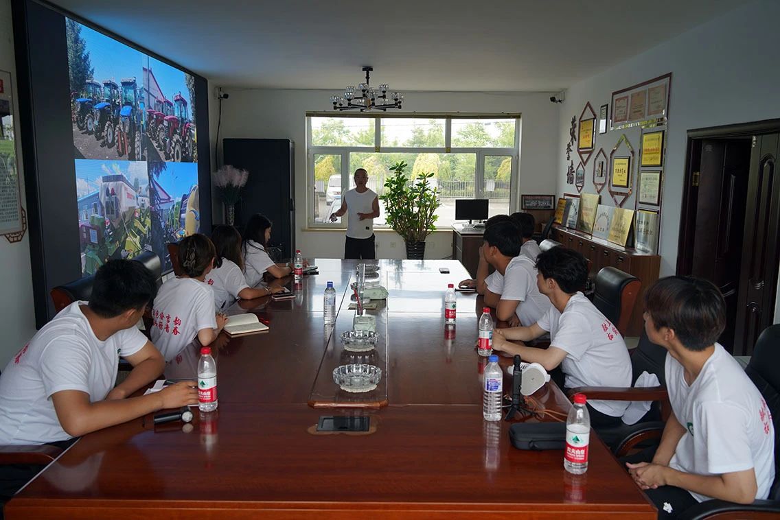 之后,合作社负责人张帅带领实践团前往农机仓库。介绍农机设备在水田的作业用途,讲解调试设备实现高效作业的要点。实践团成员被机械科技吸引,围绕农机操作、创新应用,积极与专业人员交流,分享农业科技知识与理念,深化对智慧农业的认知。
