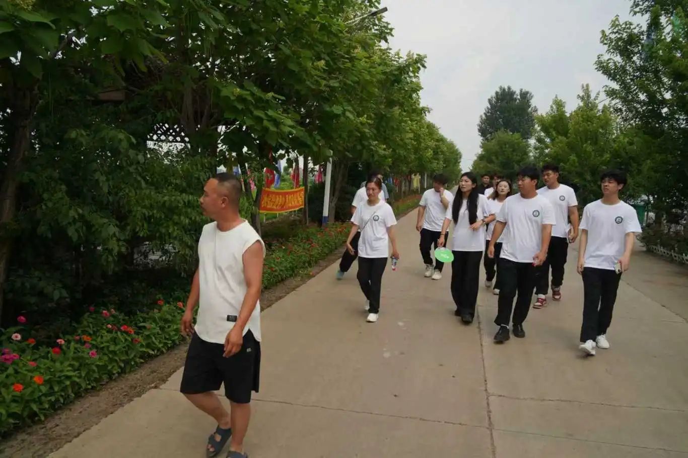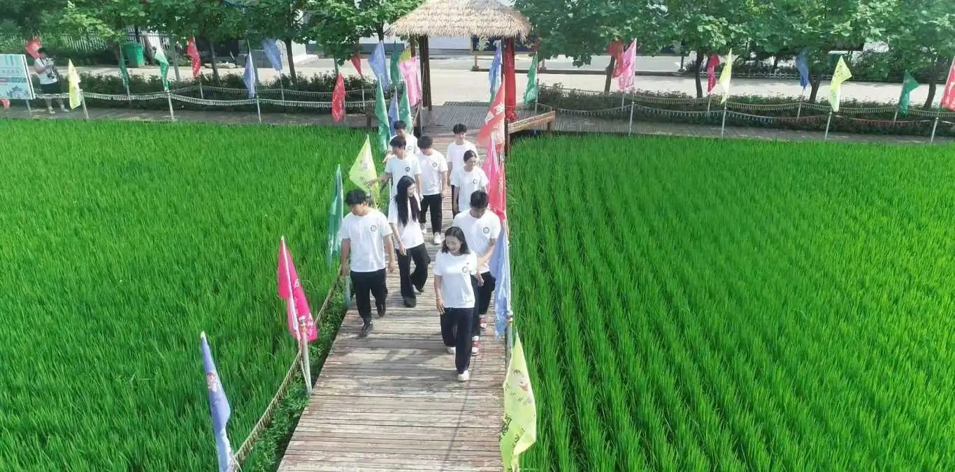 合作社负责人张帅引导实践团参观了关于水稻的种植,加工等基地,在田间近距离感受这“青绿稻浪”。队伍沿着小径前行,蛙鸣相伴,彩旗飘扬。踏入田间,青绿稻浪一望无垠,同学们或驻足观察稻苗长势,或交流探讨种植知识,在乡野课堂里,把理论扎根于泥土,让青春沾染稻香。