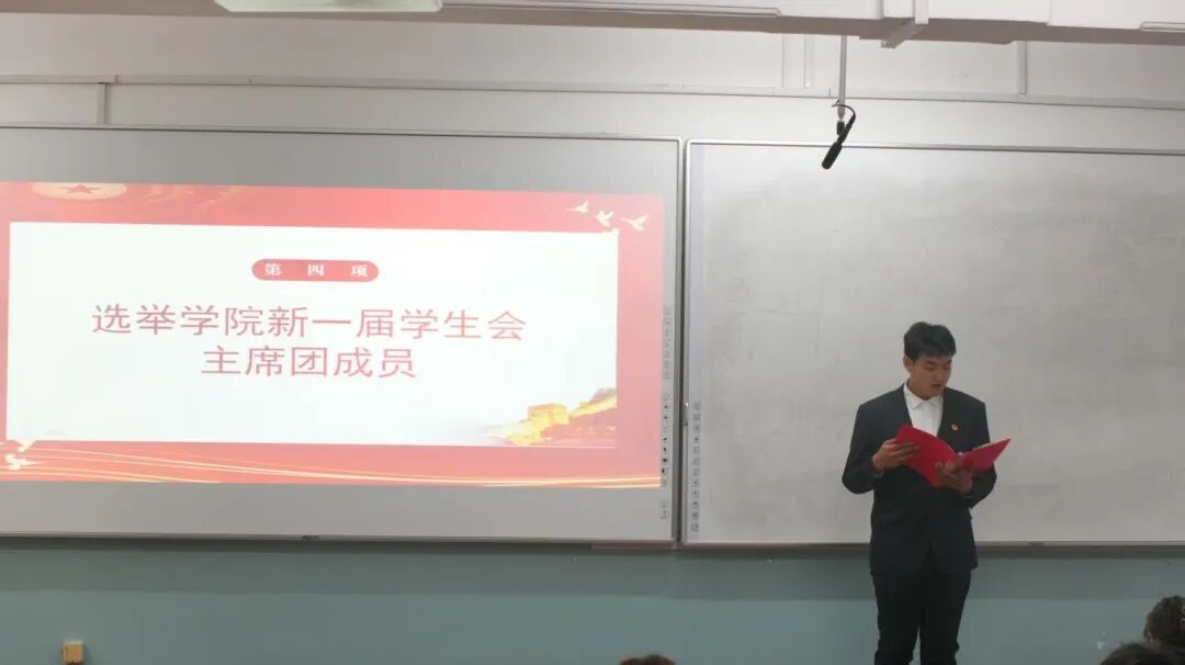 随后,大会进入核心的学生会换届环节。现场严格遵循既定流程,对上一届学生会成员的工作进行简要回顾,并有序完成新一届学生会成员的选拔与职务交接。整个过程公开透明、规范严谨,确保学生会工作无缝衔接,为后续服务同学、开展校园活动筑牢组织根基。