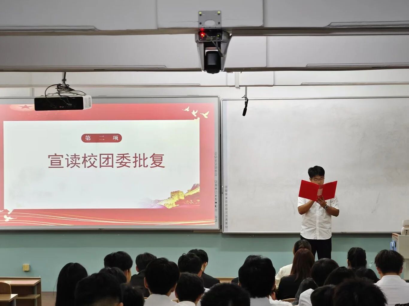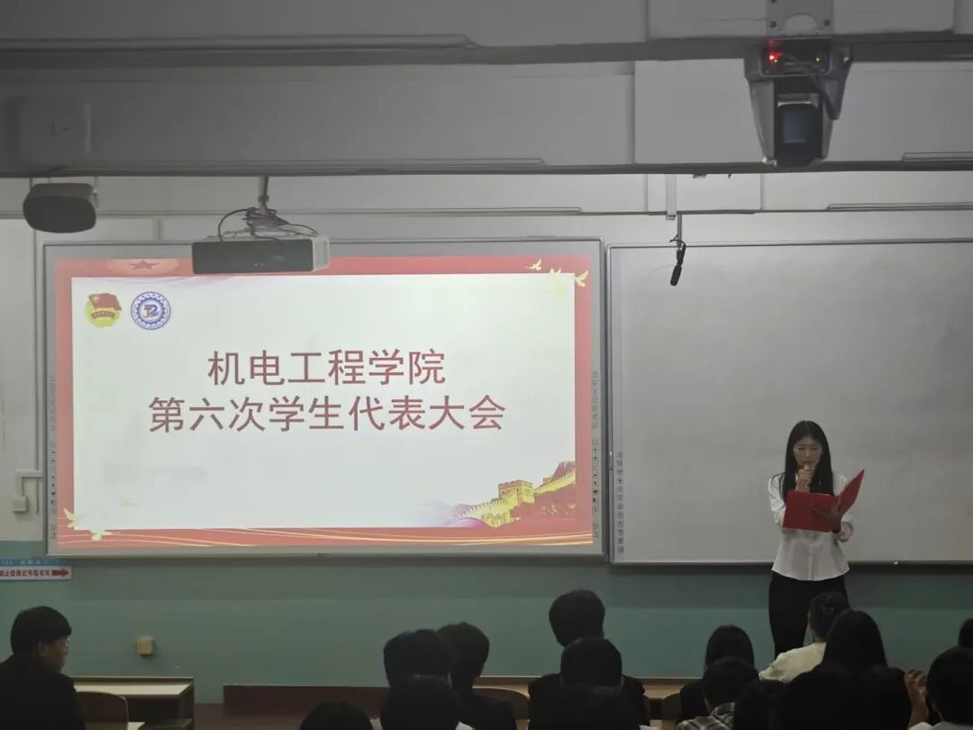 国歌仪式结束后,王吉凯同学上台宣读校团委关于召开我院第六届学生代表大会的批复文件。文件中,校团委对我院本次学代会的筹备工作给予肯定,明确同意大会召开及相关议程安排,为大会的规范推进提供了重要依据,也让全体代表更加清晰会议的合规性与重要性。