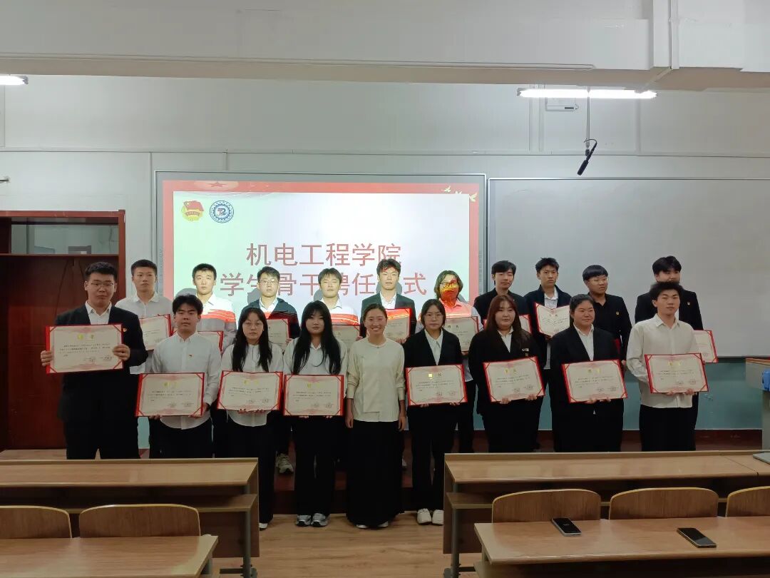 大会最后,王丽贺老师为22级分团委学生会学生干部颁发聘书,以表彰他们任期内为学院学生工作的辛勤付出与突出贡献。证书承载着认可与感谢,接过证书的每一位上一届骨干,都在掌声中收获了属于自己的奋斗荣光。随后,王丽贺老师与上一届学生会骨干共同合影,镜头定格下这一饱含敬意与不舍的时刻,为本次学生代表大会画上圆满句号。