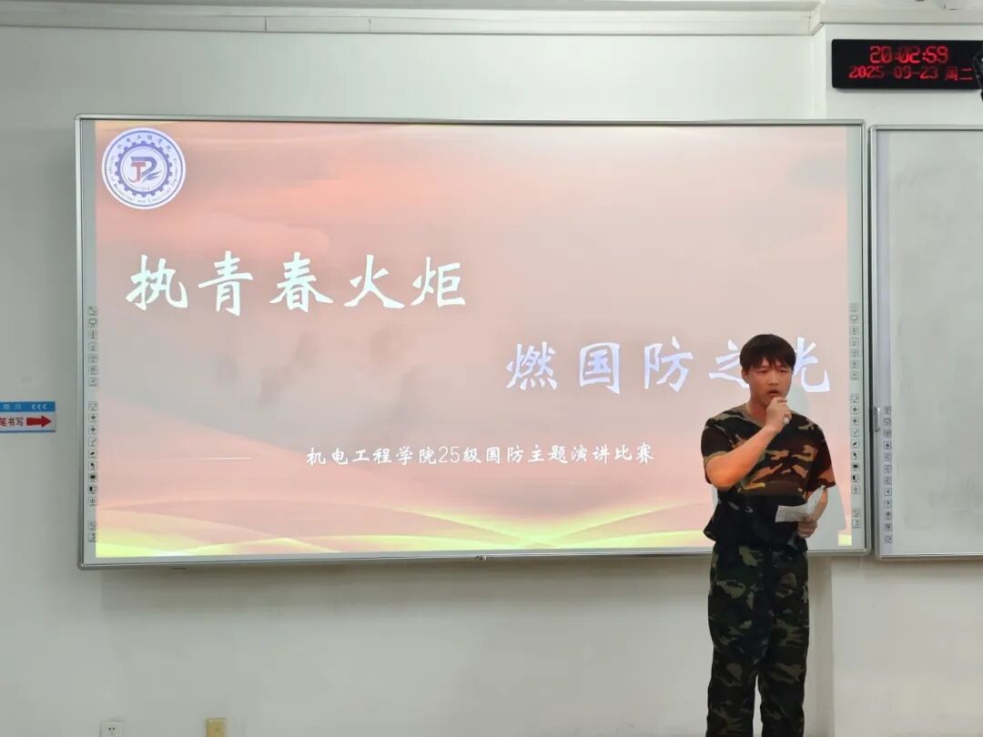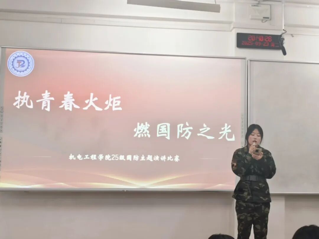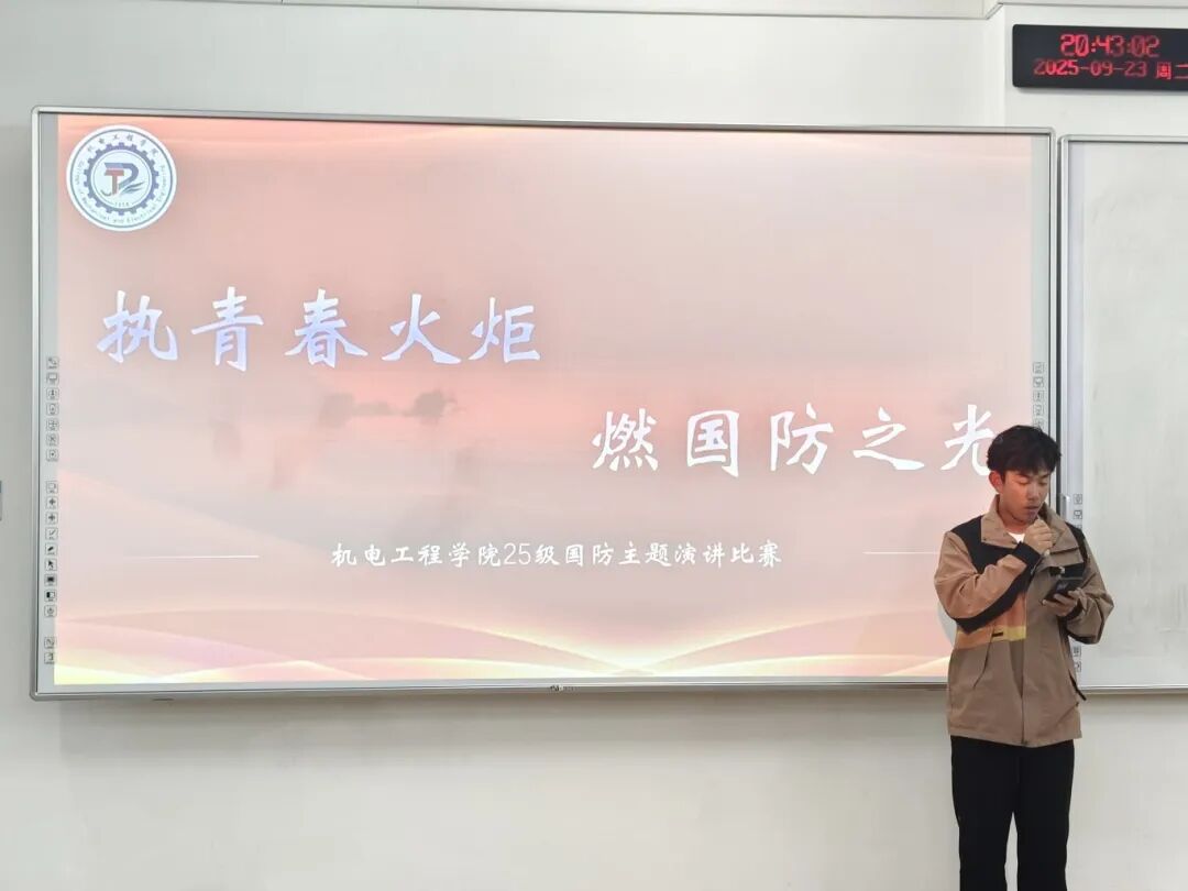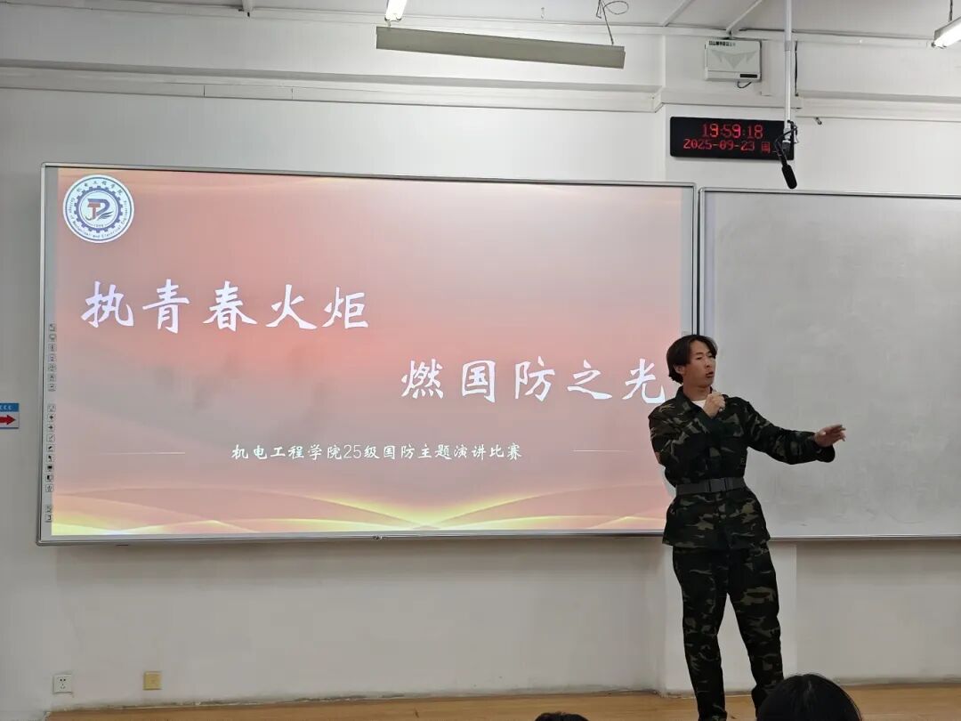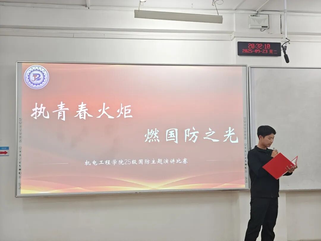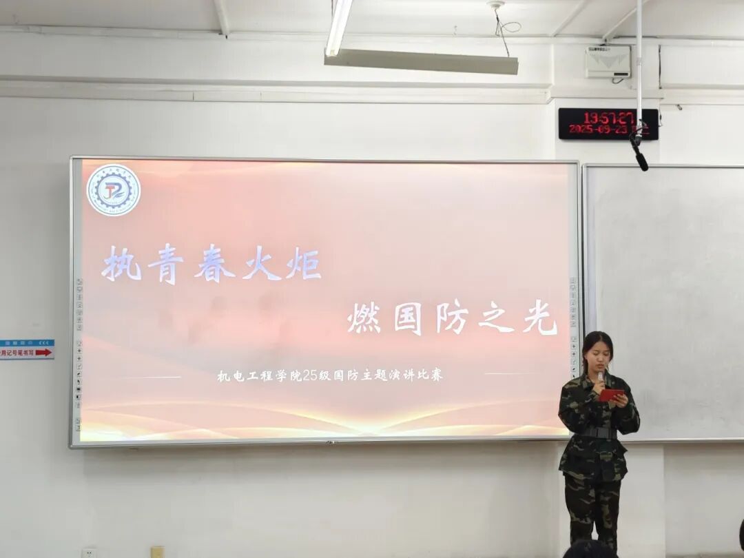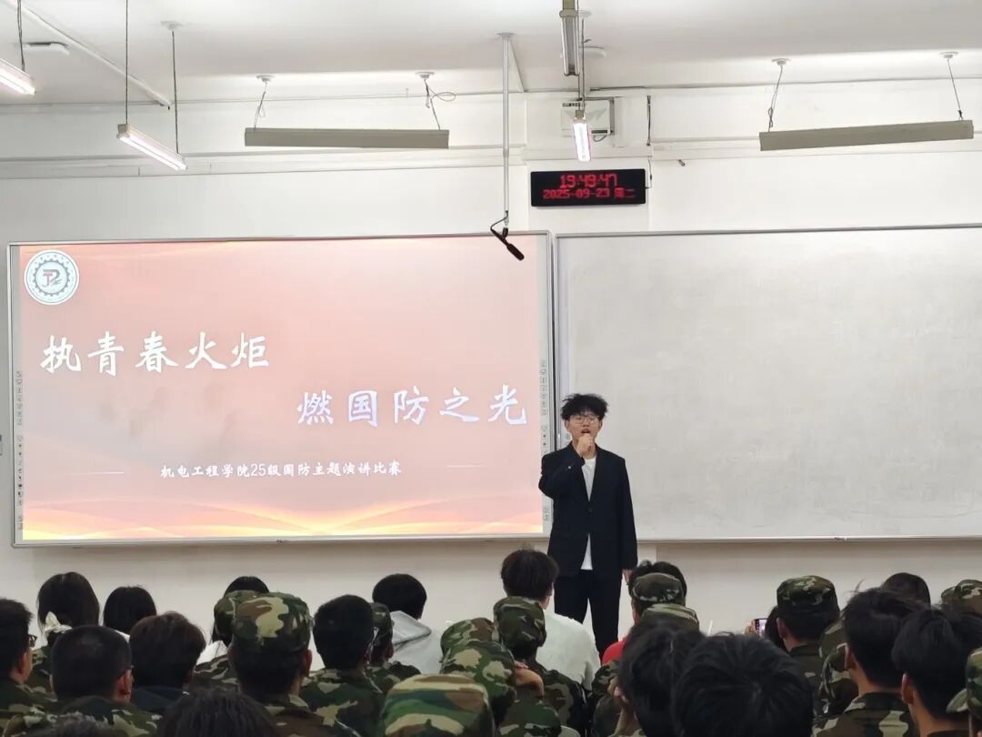 本次“执青春火炬,燃国防之光”国防演讲比赛,让机电新生们以热血之声诠释了青年的国防担当。愿每一位同学都能将这份爱国情、国防志融入日常,以青春之我,护锦绣山河,在强国征程中书写属于新时代青年的国防华章。