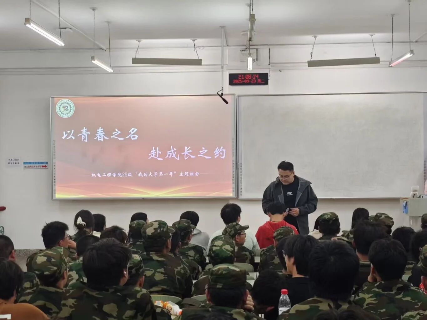 会议最后,王清蔚老师结合自身教学经验与往届学生案例,与25级新生交流。他不仅细致叮嘱大家要快速适应大学的学习节奏与生活模式,提前做好时间管理,还鼓励同学们多尝试、敢探索,在兼顾专业学习的同时,积极参与实践活动拓宽视野,更提醒大家遇到困惑要及时沟通,珍惜大学第一年打基础的关键时期,为未来发展做好铺垫。
