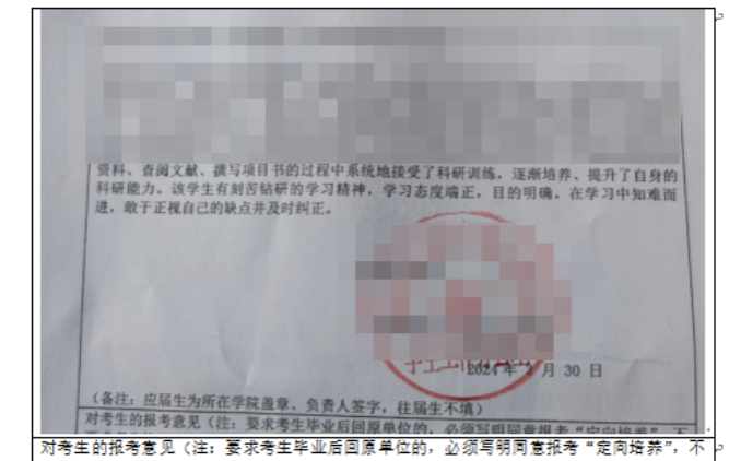 应届需要盖章的同学,应把这一页打印出来,去找相关部门,写评语,签字盖章之后,再用手机拍下来,把这个格剪切,粘贴在电子版的表的相应位置效果如下图。